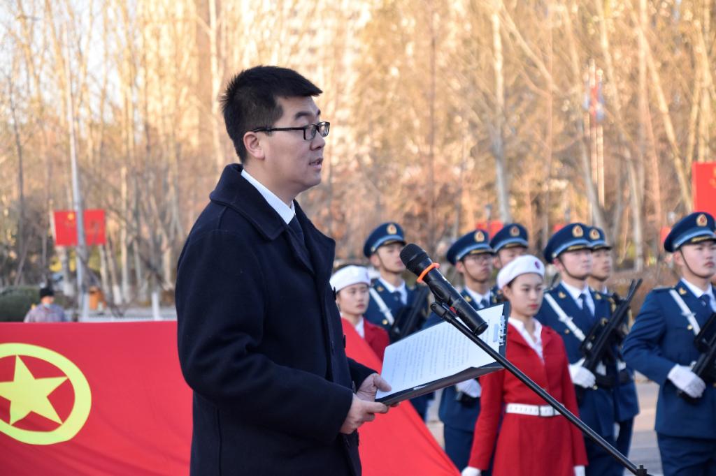 永利23411集团实践部部长、尖兵队礼兵分队副队长张坤同学作为学生代表发言。他为圆蓝天梦想考入沈航这所东北唯一一所以航空航天为特色的综合性大学。沈航的航空航天精神和深厚的国防军工情怀,点燃了他航空报国的激情和斗志。他努力成为一名国旗护卫队员,用挺拔的身姿、标准的动作、铿锵的步伐为菁菁校园那抹最美空军蓝增添更靓丽的色彩!他倡议沈航学子要秉承校风校训,深植弘扬六十七年以来沈航人立志蓝天、献身国防的深厚军工国防情怀,为实现沈航人的蓝天梦、人民军队的强军梦、民族复兴的中国梦而砥砺前行,拼搏奋斗,在新时代中国特色社会主义奋进的征途上书写属于沈航人的绚丽诗篇!
