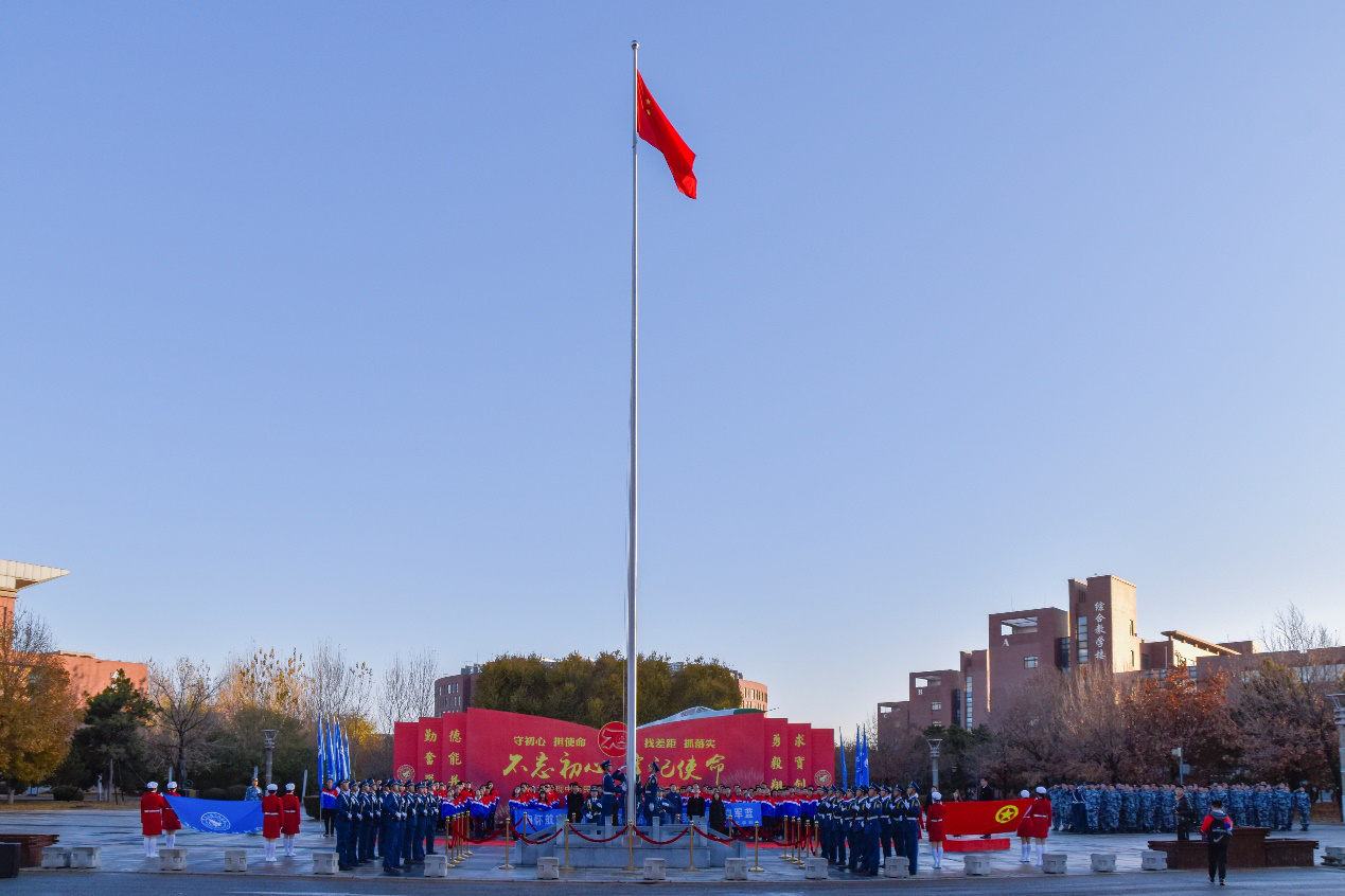 最后,升旗仪式在全体师生洪亮的“胸怀航空报国志 弘扬国防军工情 致敬最美空军蓝”口号声中结束。