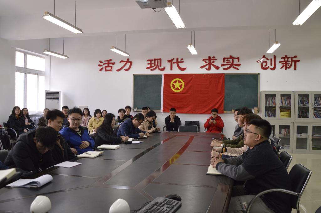会议由19届学生会主席李金航、团委副书记马子茹主持,永利23411集团党总支书记石峰、党总支副书记李江、 团委书记李苏宁、18级辅导员周永乐老师以及18届院干、19届新任院干参加了本次大会。会上党总支书记石峰作了讲话。