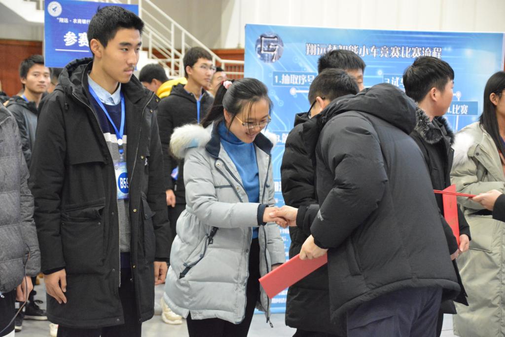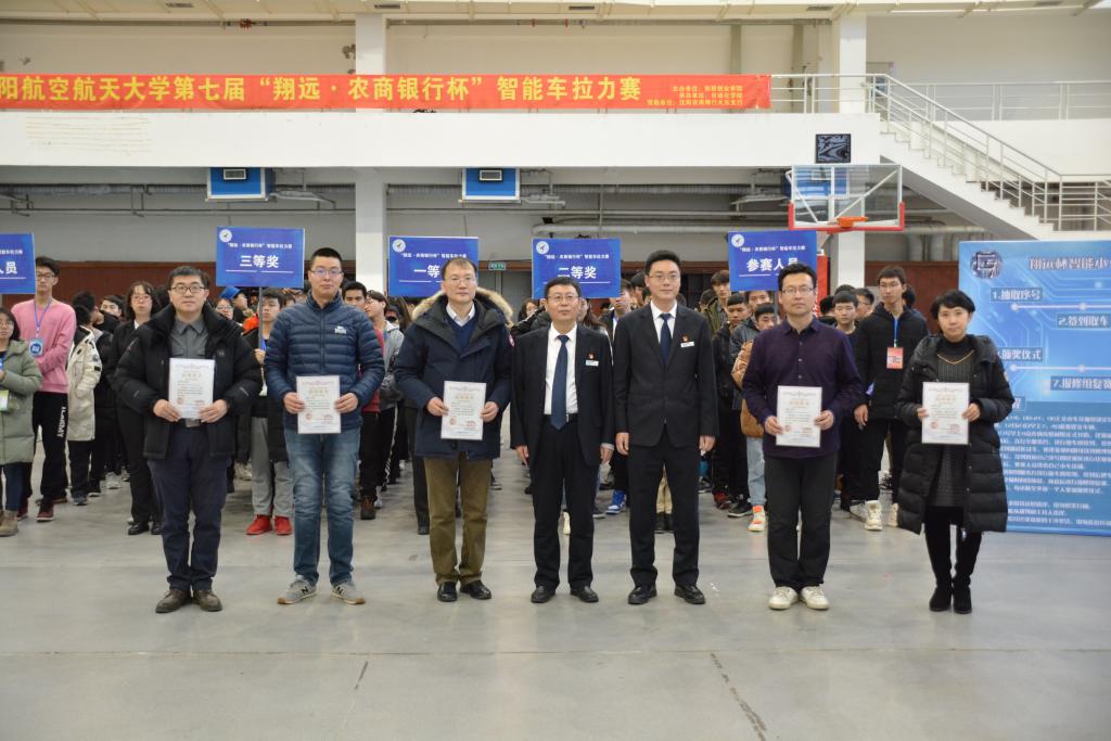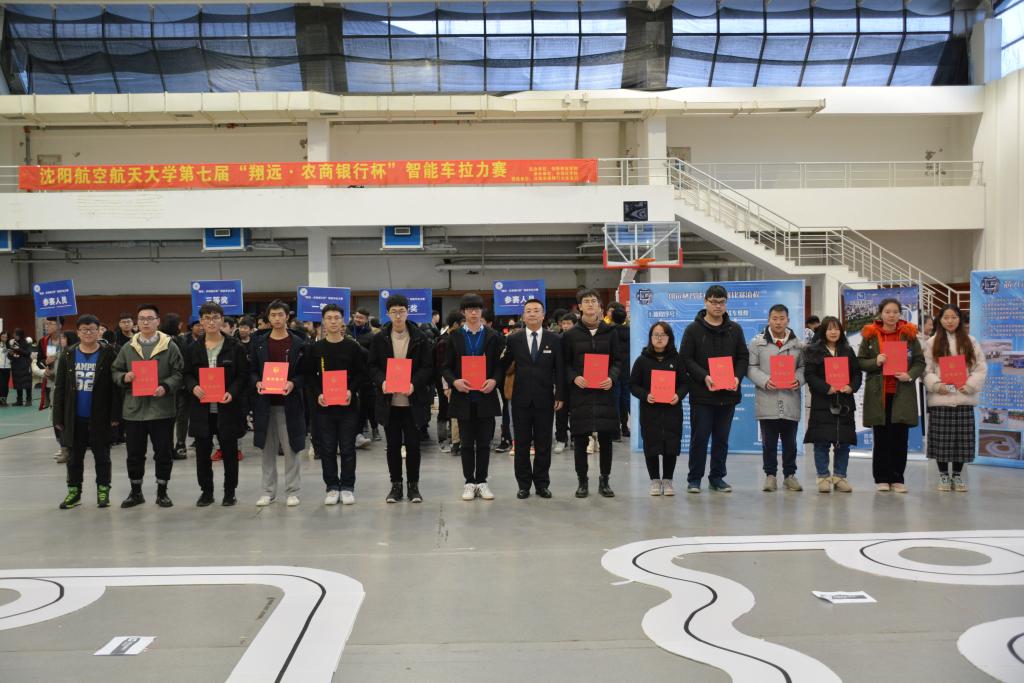 12月23日,由沈阳航空航天大学创新创业学院主办,沈阳农商银行亲情赞助,永利23411集团承办的沈阳航空航天大学第七届“翔远·农商银行杯”智能车拉力赛在我校体育馆圆满闭幕。莅临本次大赛的领导有沈阳农商银行党委委员、董事会秘书、工会主席朱志强;社区银行部总经理司常虹、商誉银行部总经理魏可远、新金融生态圈孵化器办公室主任姬捷及业务骨干赵国武;沈阳农商银行大东支行行长李晓峰、副行长周海峰、行长助理关晓晖、戴书玲。永利23411集团院长张庆新,教务处副处长徐世峰,创新创业学院副院长王琳琳,永利23411集团副院长孟光磊,永利23411集团副书记李江,永利23411集团团委书记李苏宁,永利23411集团18级辅导员周永乐,大赛组委会负责人张海军副教授。