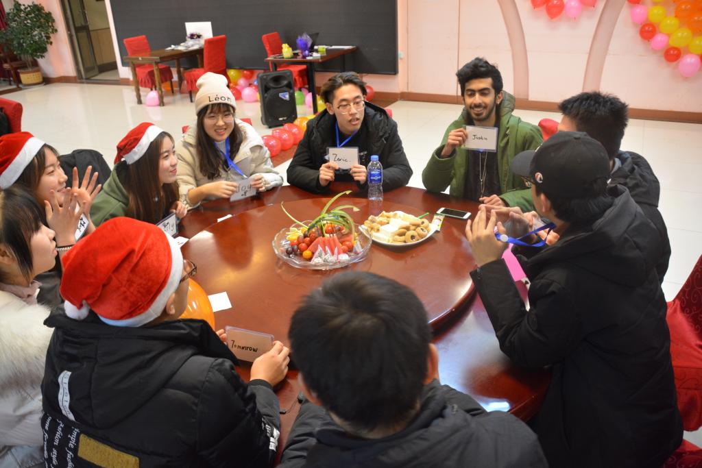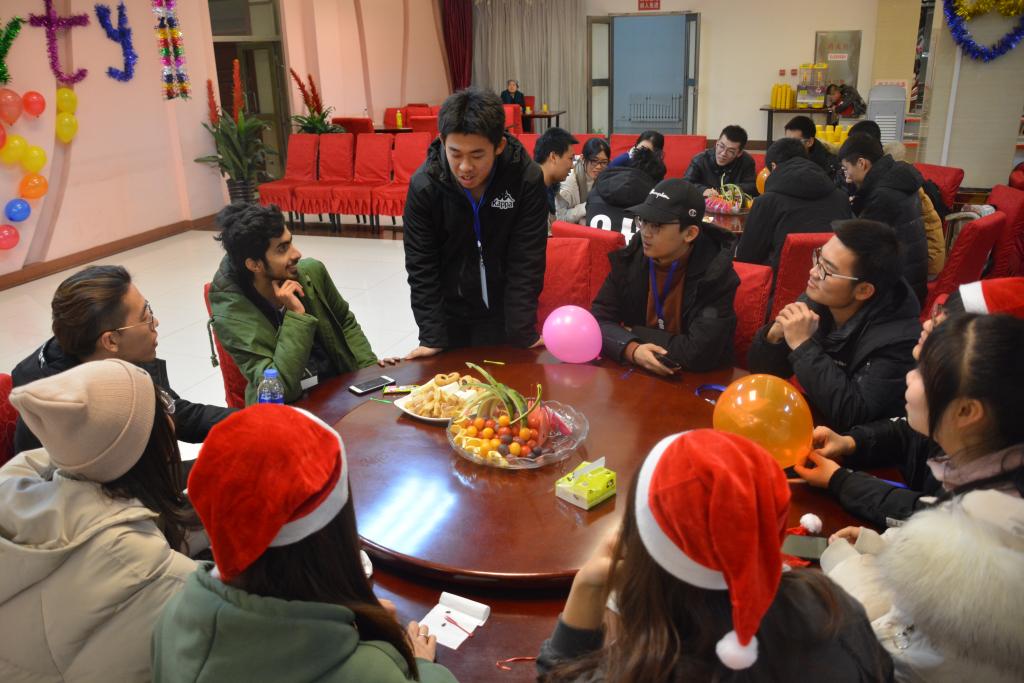 活动开始前,工作人员提前到场布置好了场地。正值平安夜,现场的装饰使用了许多圣诞元素,为活动增添了节日的氛围。不久,参加活动的同学与国际友人陆续来到并入座。主持人提前为大家介绍了整个活动的流程。听完介绍后,同学们对活动更加地期待,现场气氛更加轻松愉快。