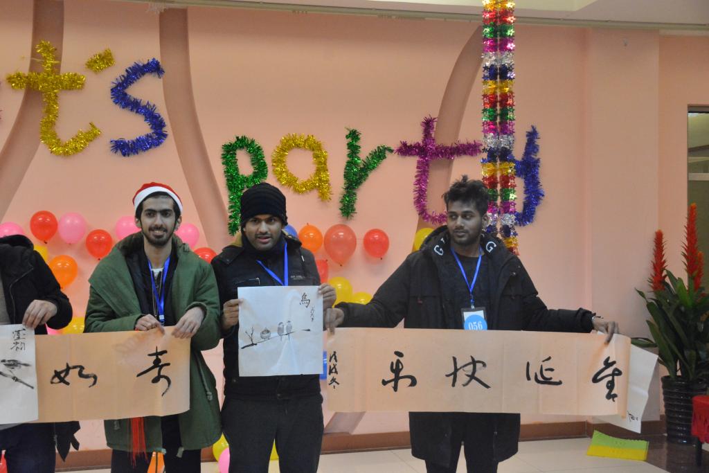 之后又有古筝表演、魔方表演等节目。古筝优雅动听的声音让国际友人为之沉醉,魔方表演让现场同学为之惊叹。最后中国学生教外国朋友写毛笔字,写下了譬如“寿如金石”等寓意美好的词语,并将作品送给了国际友人。快乐的时间总是短暂的,在主持人宣读完结束语后,大家交换了联系方式、拍了集体照,联谊会圆满结束。