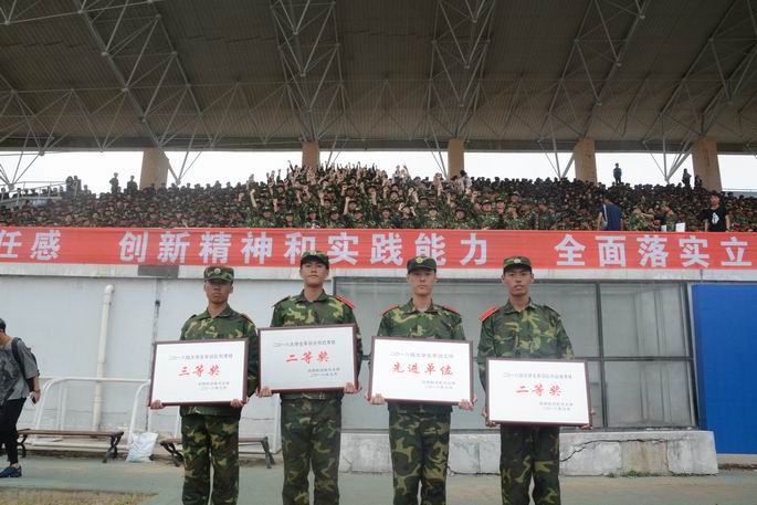 在军训总结表彰环节中,校领导为军训优秀连队及个人颁发了奖状。永利23411集团获得了“大学生军训工作先进单位”,“军训班队列考核二等奖”,“军训分列式考核二等奖”以及“军训连队列考核三等奖”共四项奖项。