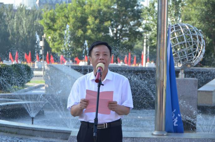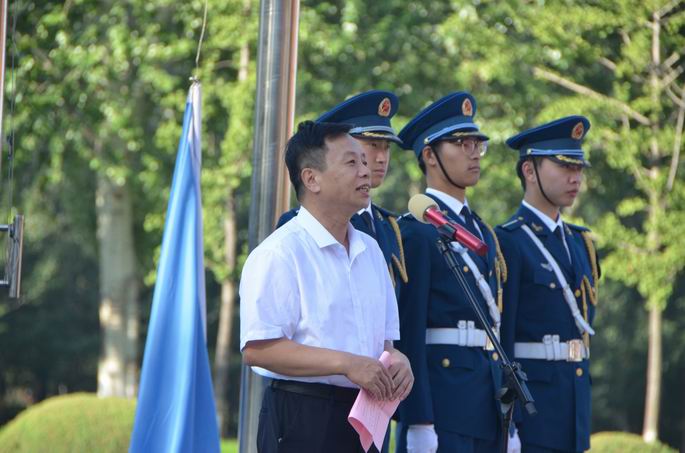 仪式第二项,由教师代表李忠海教授在国旗下讲话。李忠海教授从如何建立和谐师生关系,促进学生健康成长角度讲,高校教师就是要做好三种角色:人生规划的引领者,学习过程的陪伴着,终身学习的促进者;要指导学生做好三个规划:学习规划,职业规划和角色规划。