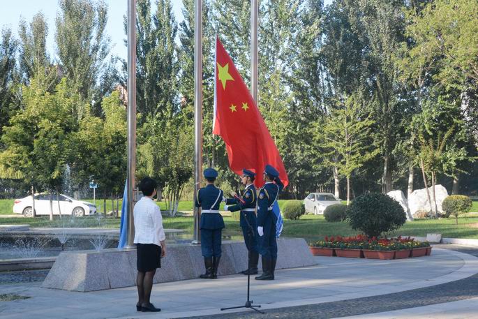 当雄壮的中华人民共和国国歌奏起时,鲜艳的国旗冉冉升起,全体师生肃立,齐唱国歌,共同见证这庄严而神圣的时刻。五星红旗映日月,四季花开壮山河!