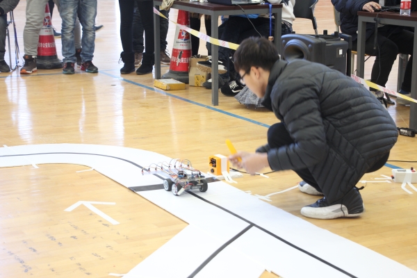 该赛事有来自辽宁石油化工大学、沈阳航空航天大学电子信息学院、航空航天工程学部和永利23411集团共54支队伍报名参赛,报名人数达到150多人。经过一个多月的准备工作,最后有36支队伍提交比赛车辆。此次“翔远杯”比赛采用竞速的方式,分为差速组和舵机组两类。比赛由裁判组以及所有参赛选手共同监督,保证了比赛的公平公正。整个赛程紧张热闹,共有25辆车跑完全程,最短时间50.07秒。