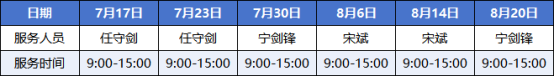 办理日期:7月16日、7月23日、7月30日、8月6日、8月13日、8月21日